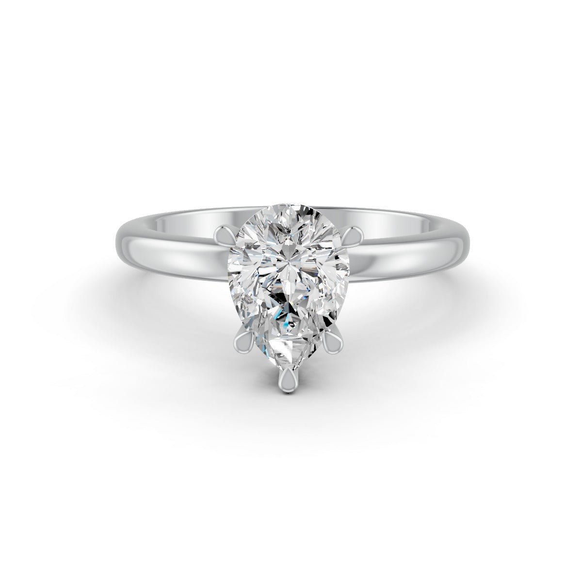 Pear Cut Real Moissanite 5 Prong Solitaire Ring 14K Gold Plated